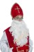 Die Bischofskappe, (die Mitra) besteht aus dem gleichen Material wie das Ornat und ist mit einer zarten durchbrochen Schal Verzierung verziert.. Auf der Vorderseite mit einem römischen Kreuz verziert. Die Mitra ist steif und passt perfekt auf den Kopf. Zusätzlich hat sie ein eingenähtes Gummiband, das unter das Kinn gelegt werden kann, um absolut sicher zu sein, dass es nicht herunterfällt, wenn der Weihnachtsmann Geschenke aus der Tasche nimmt.