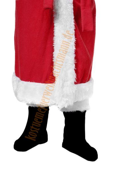 Weihnachtsmannschuhe sollen nicht nur dafür sorgen, dass die Füße nicht frieren, aber auch elegant aussehen und zum Rest des Kostüms passen. Dank der schwarzen Samtüberzieher, die einen schneeweißen Kunstpelzbesatz haben, ist das möglich. Jeder Weihnachtsmann wird sich sicherer fühlen, wenn er weiß, dass ihn seine altbekannten Schuhe oder Hausschuhe nicht verraten werden. Die Überzieher für Weihnachtsmannschuhe werden mit Gummis befestigt, die man unter der Schuhsohle und an der Wade entlangführt. Die Überzieher sind in zwei Größen verfügbar, die unter