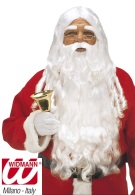 Größen und Varianten verfügbar). Der Bart lockt sich leicht, wodurch er sehr natürlich aussieht. Der Bart wird von zwei Gummis an Ort und Stelle gehalten, aber zusätzlich kann man ihn noch mit einem Spezialkleber (im Set) ankleben. Die Perücke ist schulterlang, kann also die echten Haare des Weihnachtsmanns, seine Ohren und die Gummis zur Befestigung verdecken. Die selbstklebenden Augenbrauen verleihen der Verkleidung ein edles Aussehen. In Deutschland produziert.